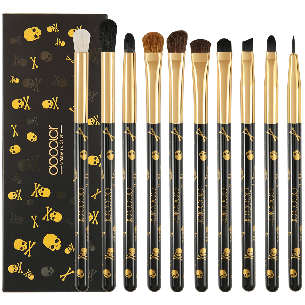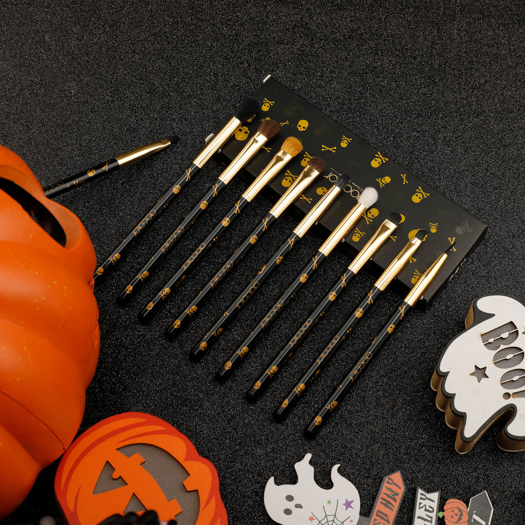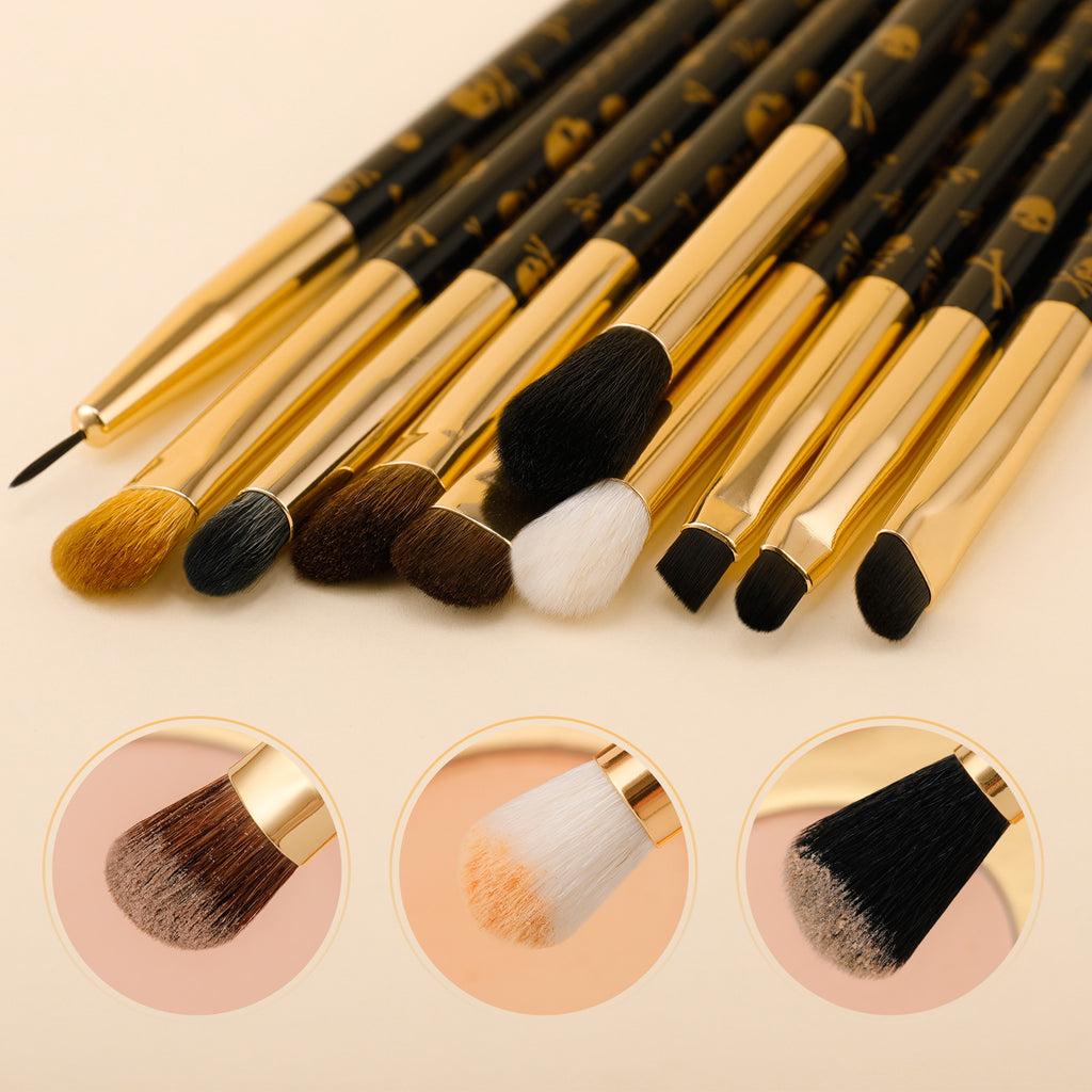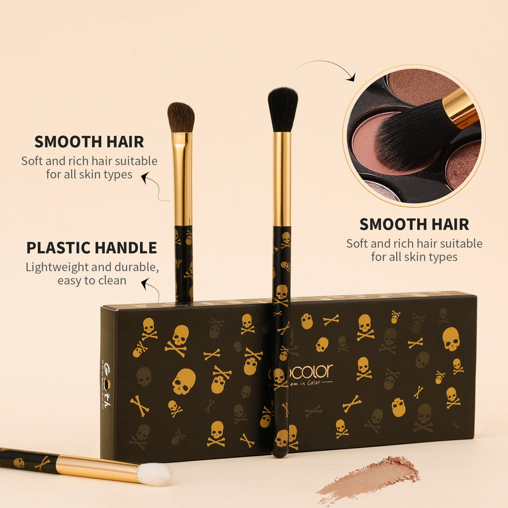 Me encantan! Algunas de sus fibras son de pelo de animal lo cuál hace las texturas suaves y al momento de limpiar muy rápido! No deja residuos, y la aplicación es firme ya que están muy bien sujetas al mango. En cuanto al biselado es increíble, por más que intentes hacer un rayón no podrás ya que viene una con capa de brillo que le da resalte al cepillo y hace que no le pase nada a la pintura de las calaveras, se ve elegante y por el tamaño es ideal para llevar de viaje y hacer looks perfectos ya que cada pincel tiene un diseño con el cuál en conjunto te ayuda perfectamente a crear varios diseños en tus ojos, complementa al 100 tu cosmetiquera.